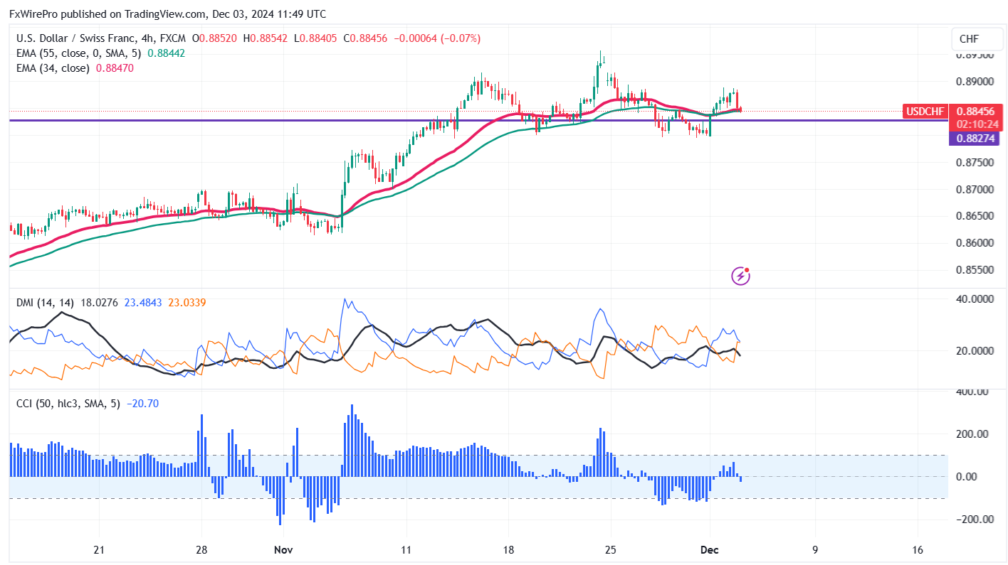 The pair is currently trading above the 34- and above 55-EMA on the 4-hour chart.