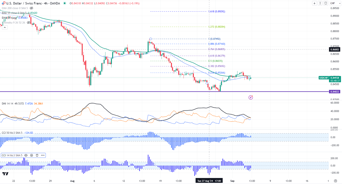 The pair is trading below 34 and 55 EMA in the 4-hour chart.