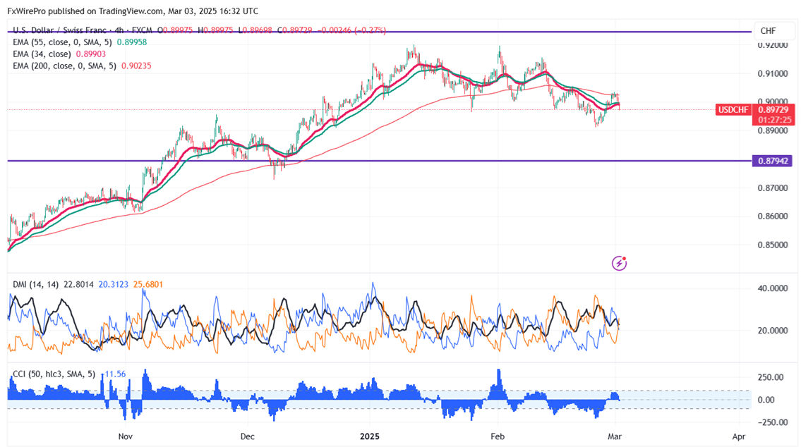 The pair is trading below the 34-EMA and 55-EMA on the 4-hour chart indicating a bearish trend. The immediate resistance is at 0.9035 any break above targets 0.9070/0.9100/0.9150/0.9200/0.92250/0.9275/0.9030.