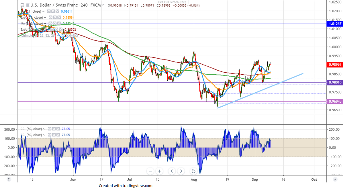 The near term support is around 0.9850 (55 4H EMA) and any violation below will drag the pair till 0.9800/0.9770/0.9715.