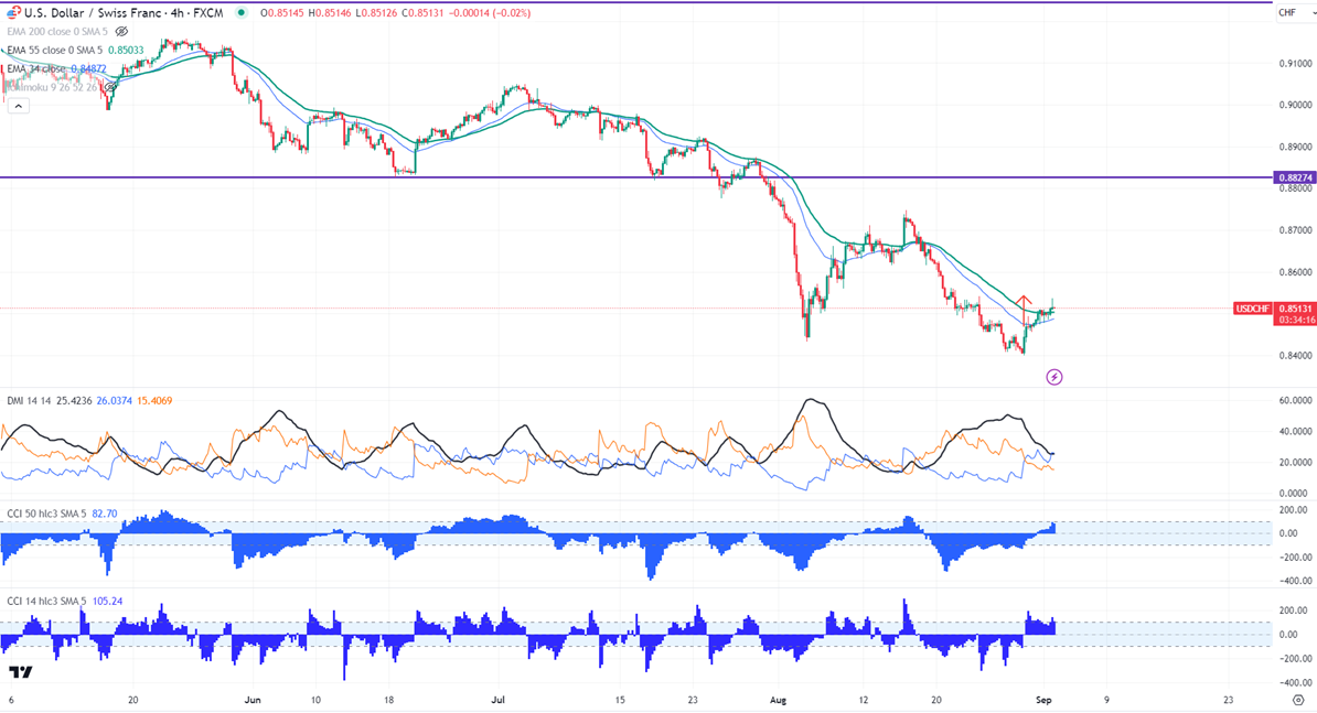 USDCHF holds above 0.8500 on board-based US dollar buying. It hit a high of 0.85371 and is currently trading around 0.85128.