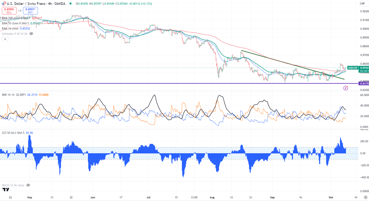 The pair is trading above 34 and 55 EMA in the 1-hour chart.