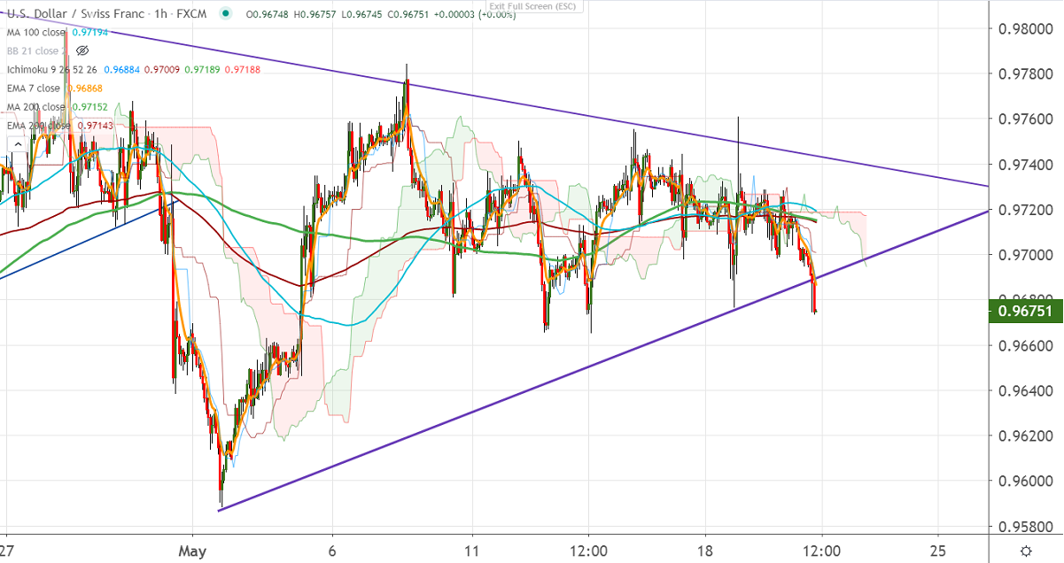 On the flipside, near –term support is around 0.96650 and any indicative break below will drag the pair down till 0.9588.