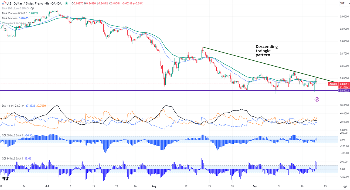 The pair is trading below 34 and 55 EMA in the 4-hour chart.
