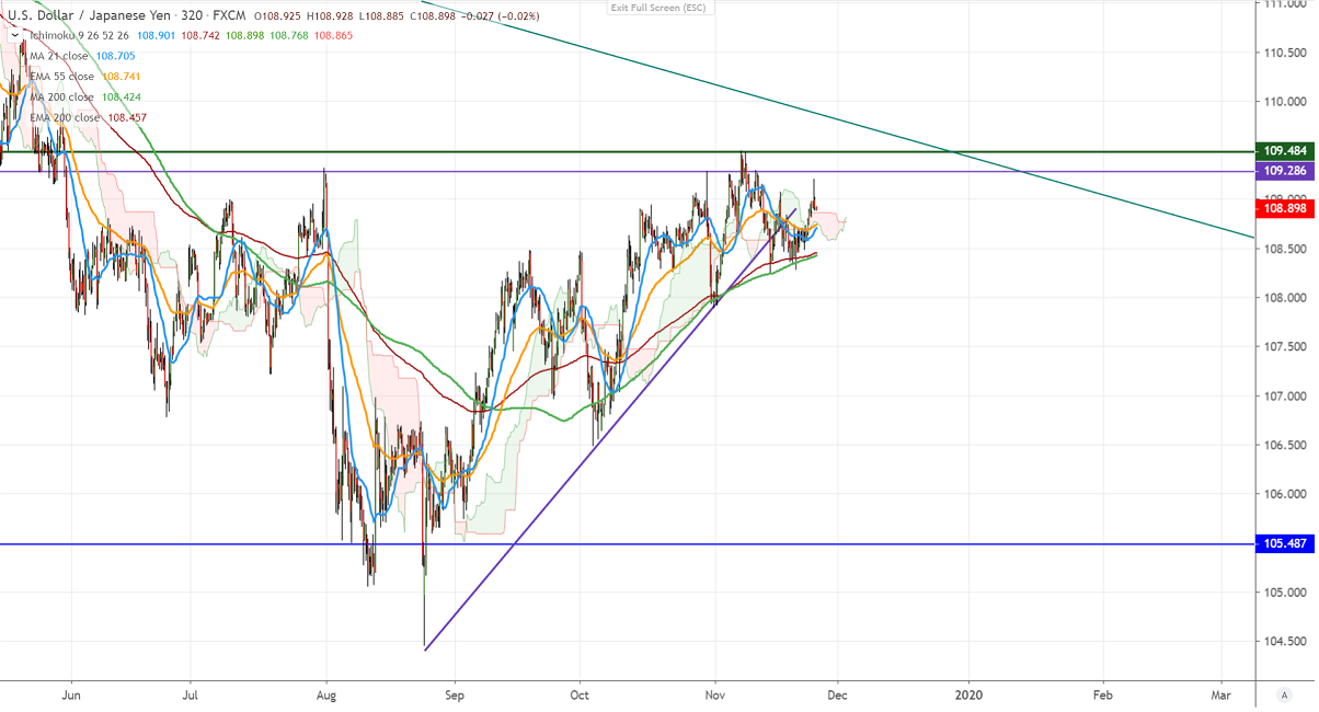 It is good to buy on dips around 108.70-75 with SL around 108 for the TP of 110/110.60.