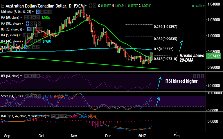 - Decisive close above 20-DMA to see extension of upside, scope for test of next major resistance by 200-DMA at 0.9821.