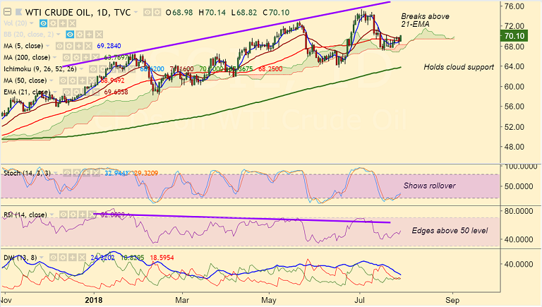 Recommendation: Stay long on close above 21-EMA, target 71.60/ 72/ 72.80