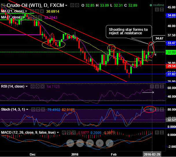 Shooting star candle pattern formed at 32.78 after three weeks of uptrend.