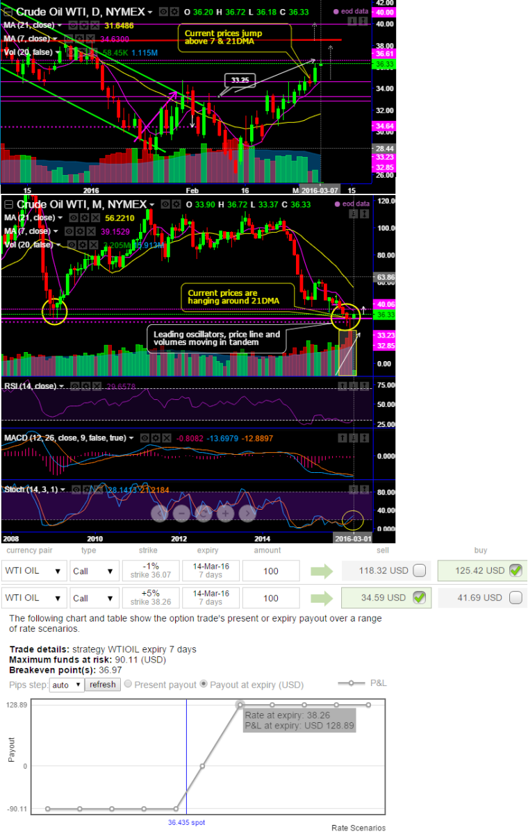 Buying momentum has been intensifying as it has broken crucial resistance at 34.64 levels on an intraday terms but when we consider the short-to- intermediate term trend of this commodity it shows a short term targets upto 38.38 levels and even upto $40 a barrel upon breach of 1st target.