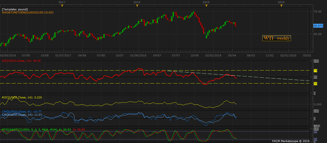 - Downside targets for WTI are as follows - $56.6, $54.4, $54, and $50 per barrel. The downside call is in line with the longer-term bearish trend. Selling is recommended at a correction of around $60.3 and $61.3 area.
