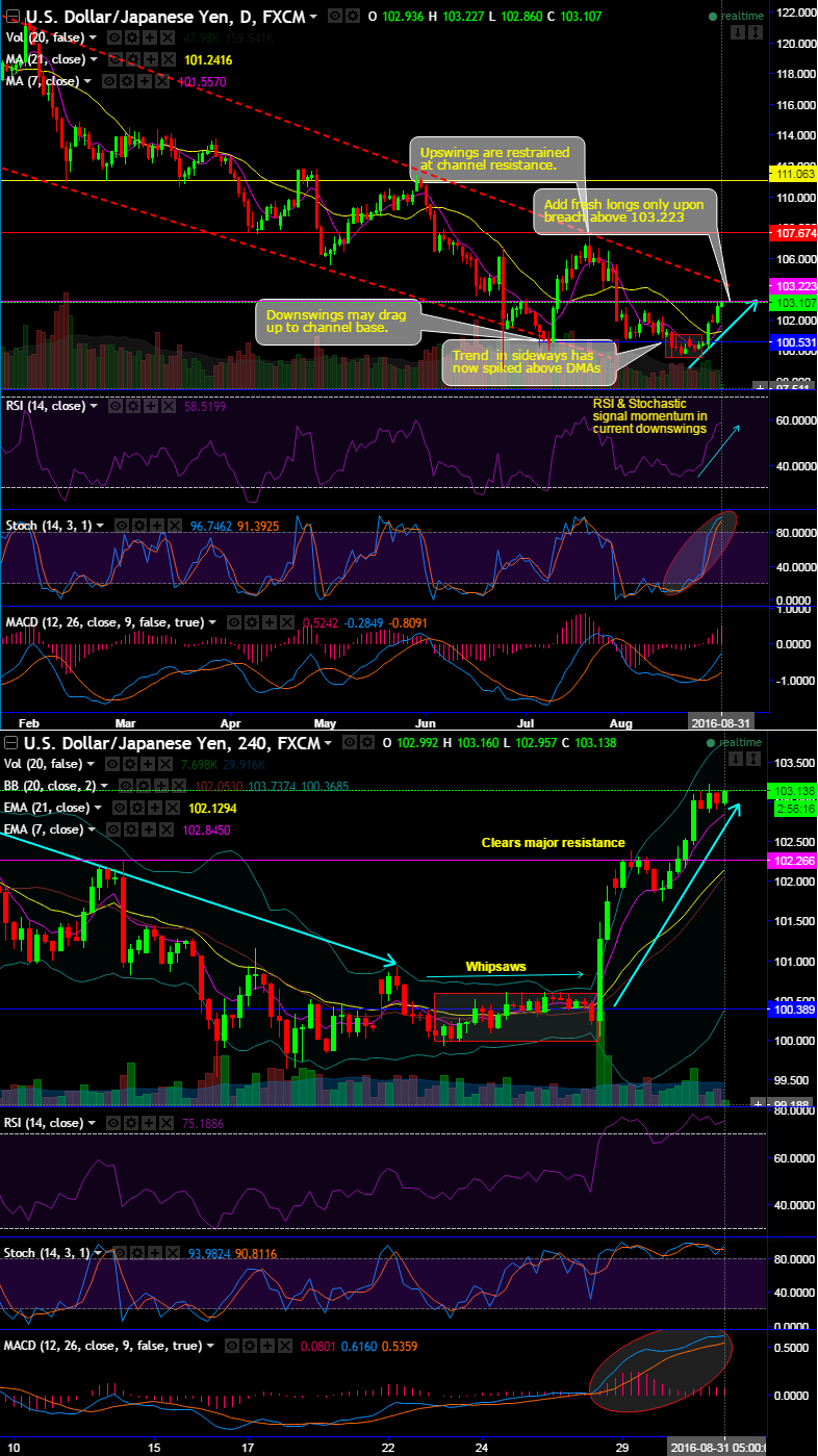 On intraday speculative grounds, one can think one touch binary calls for target 103.768 levels.