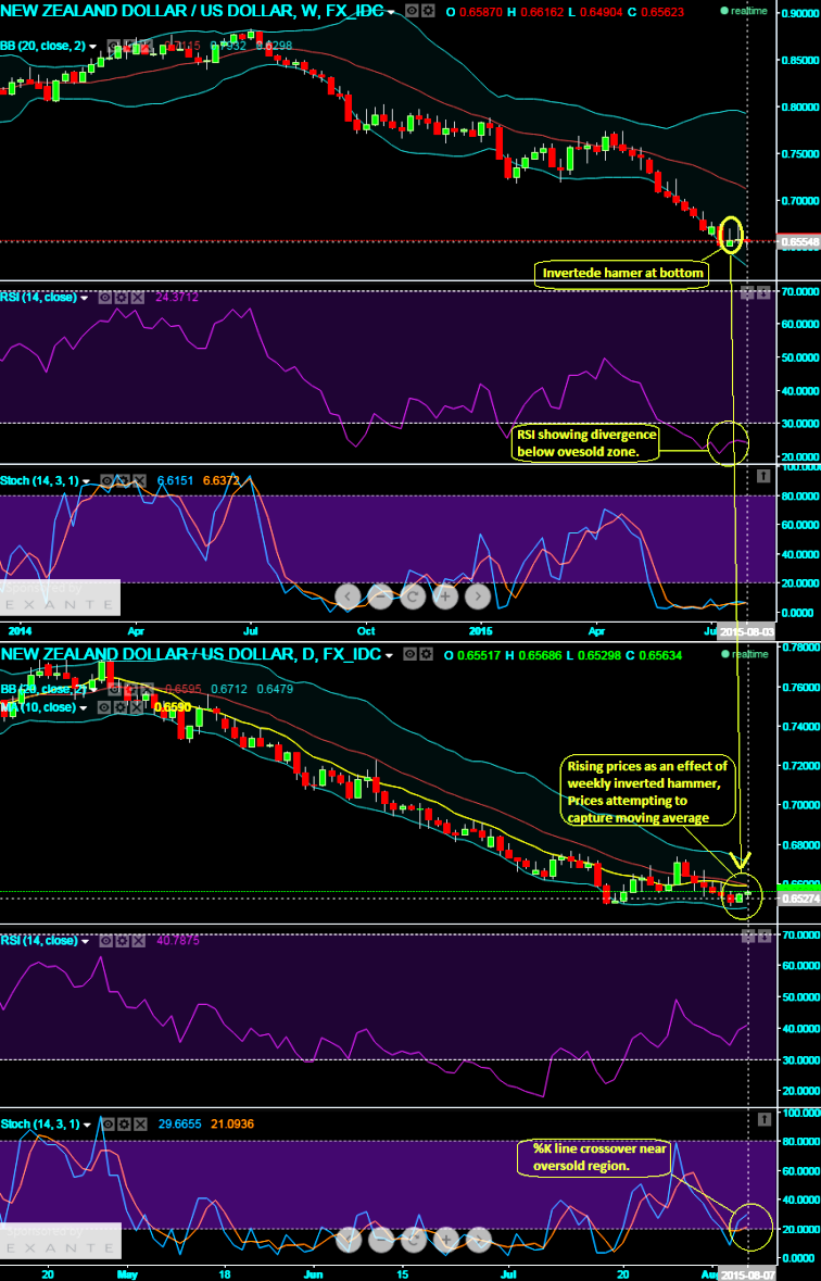 The inverted hammer that was spotted out in our earlier call has factored in the daily prices (see what has happened on daily chart after the formation inverted hammer). The pair was able to hold 6 years lows of NZD/USD as inverted hammer pattern candle that was occurred on weekly chart exactly at 0.6572.