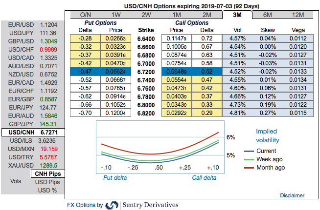 You could easily make out that the positively skewed 3m IVs of USDCNH have been stretched out on either side but little bullish bias (refer above nutshell). This is interpreted as the hedgers' bid for both deep OTM calls and OTM put options.