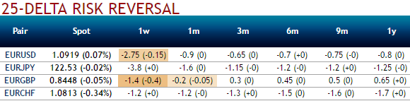 EUR-cross-risk-reversals have understandably re-priced sharply in the direction of EUR calls, especially against G10 commodity currencies that were among the worst performers on the week.