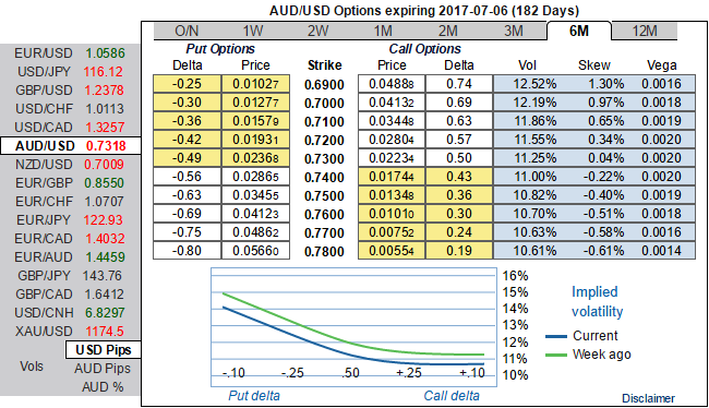 Please be noted that the risk reversals of dollar crosses are considerably signaling bullish risks in longer tenors in the dollar. As shown in the diagram positively skews in AUDUSD shows the hedgers interests in OTM puts, as a result, we could expect more bearish risks in this pair, same is the case in EURUSD, while USDCAD has been bullish as the positively skewed IVs signal OTM call are on more demand comparatively. You could probably understand by now, the impact of Fed’s hints of more hawkish approach in its monetary policy in upcoming meetings.