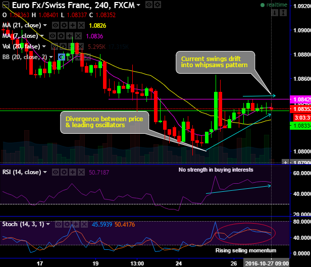 On intraday charts (4H charts), despite the upswings in the last couple of trading sessions, we traced out a long legged doji pattern at 1.0836 levels after testing resistance at this juncture in the recent times that evidences the weakness again in this pair.