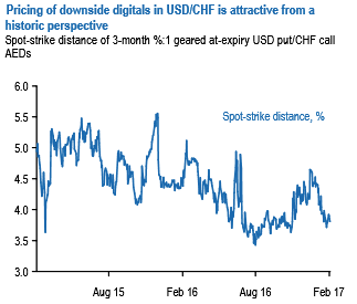 Buy a 3m 1.0313-0.95 USDCHF put spread (spot reference 1.0030).