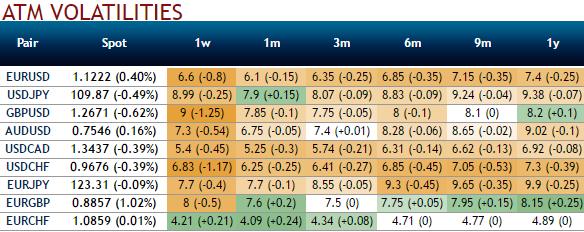 Please be noted that the above nutshell showing IVs and risk reversals of this pair, that has been neutral. Implied volatilities have been extremely lower (least among the G7 FX space) and you could also make out that there has been no hedging sentiments (neutral risk reversals in 1w tenors and with bullish neutral hedging sentiments in 1m-1y tenors).