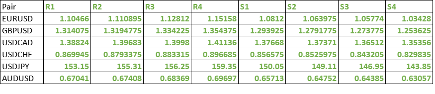 FxWirePro- Major Pair levels and bias summary