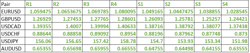 FxWirePro- Major Pair levels and bias summary