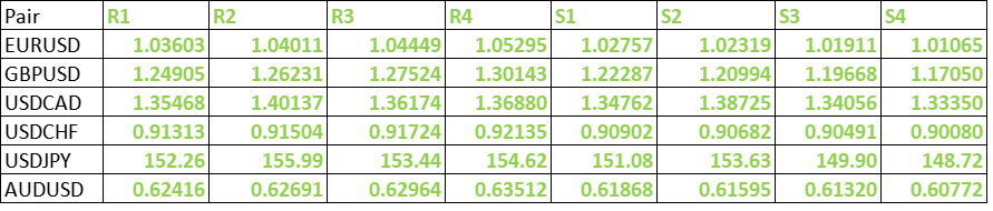 FxWirePro- Major Pair levels and bias summary