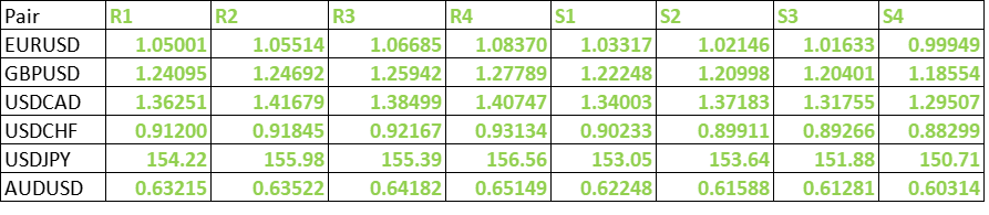 FxWirePro- Major Pair levels and bias summary