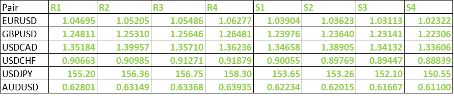 FxWirePro- Major Pair levels and bias summary