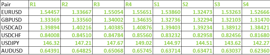 FxWirePro- Major Pair levels and bias summary