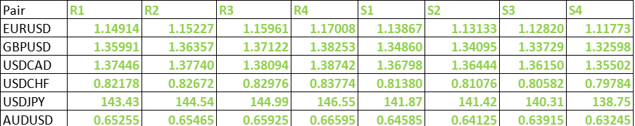 FxWirePro- Major Pair levels and bias summary