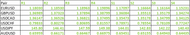 FxWirePro- Major Pair levels and bias summary