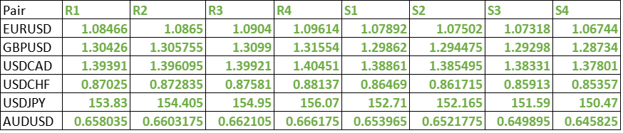 FxWirePro- Major Pair levels and bias summary