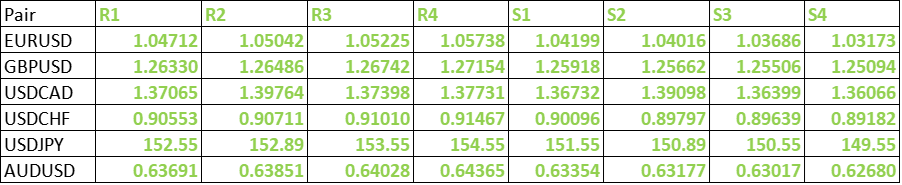 FxWirePro- Major Pair levels and bias summary