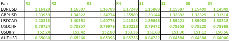 FxWirePro- Major Pair levels and bias summary