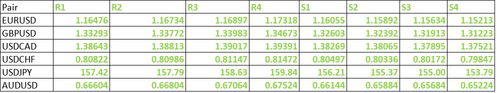 FxWirePro- Major Pair levels and bias summary