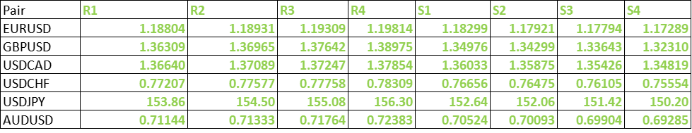 FxWirePro- Major Pair levels and bias summary