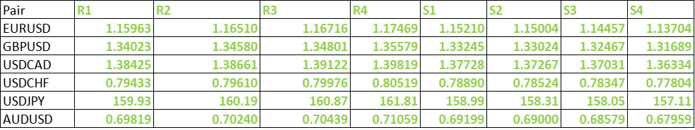 FxWirePro- Major Pair levels and bias summary