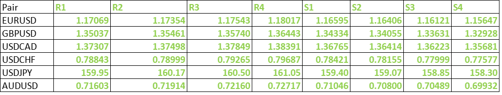 FxWirePro- Major Pair levels and bias summary