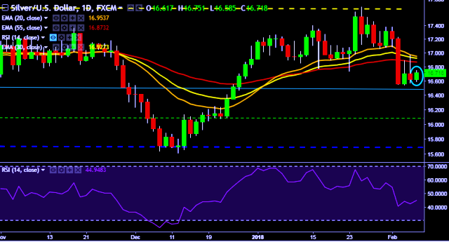 We prefer to take long position in XAG/USD only above $16.75, stop loss $16.50 and target of $16.95/$17.22.