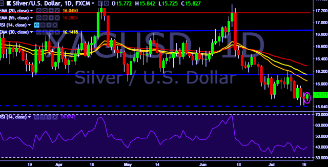 - XAG/USD is currently trading around $15.82 marks.