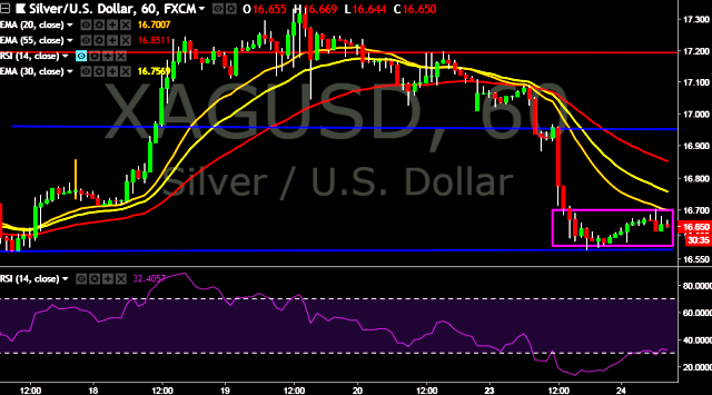 We prefer to take long position in XAG/USD only above $16.72, stop loss $16.58 and target of $16.96.