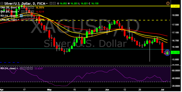 We prefer to go short on XAG/USD around $16.20 with stop loss at $16.32 and target of $15.86/$15.77.