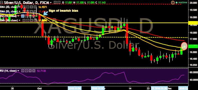 We prefer to take long position in XAG/USD only above $17.21 with stop loss at $16.90 and target of $17.48/$17.68.