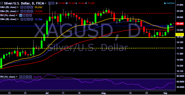 We prefer to go long on XAG/USD around $19.46 with stop loss at $19.27 and target of $19.75/$19.93.