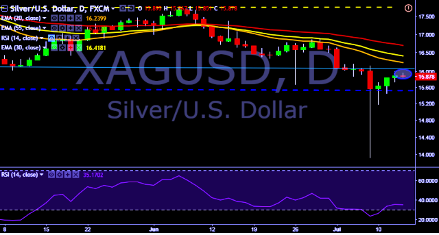 We prefer to go long on XAG/USD around $15.85 with stop loss at $15.72 and target of $16.02/$16.22.