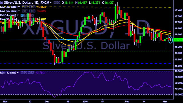 We prefer to take long position in XAG/USD around $16.40, stop loss $16.30 and target of $16.75.