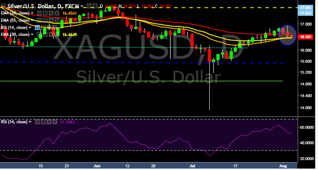 We prefer to go short on XAG/USD around $16.52 with stop loss at $16.67 and target of $16.28.