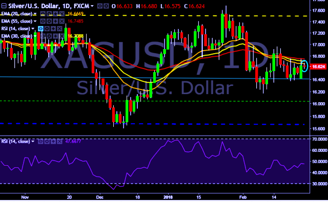 We prefer to take short position in XAG/USD around $16.67, stop loss $16.77 and target of $16.38/$16.18.