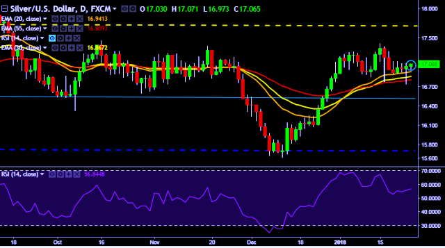 - XAG/USD is currently trading around $17.06 marks.