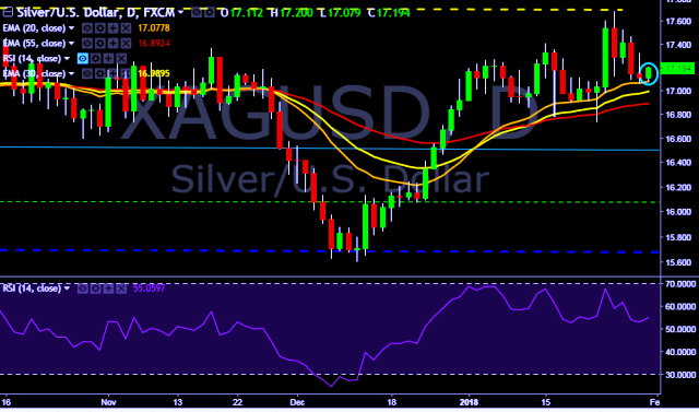 We prefer to take long position in XAG/USD only above $17.22, stop loss $17.02 and target of $17.52 mark.