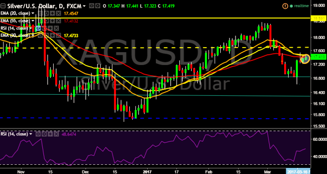 - XAG/USD is currently trading around $17.42 marks.